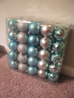 So, I bought these blue bulbs today (I'm all about plastic-shatterproof bulbs) at Target for $5, that's 10 cents each! (50 bulbs) Too bad I'd already made this wreath . . . I got the bulbs for this one last week on 50% off clearance rather than the current 75% off . . . but I am in love. Now to figure out a way to store it until next year. . .